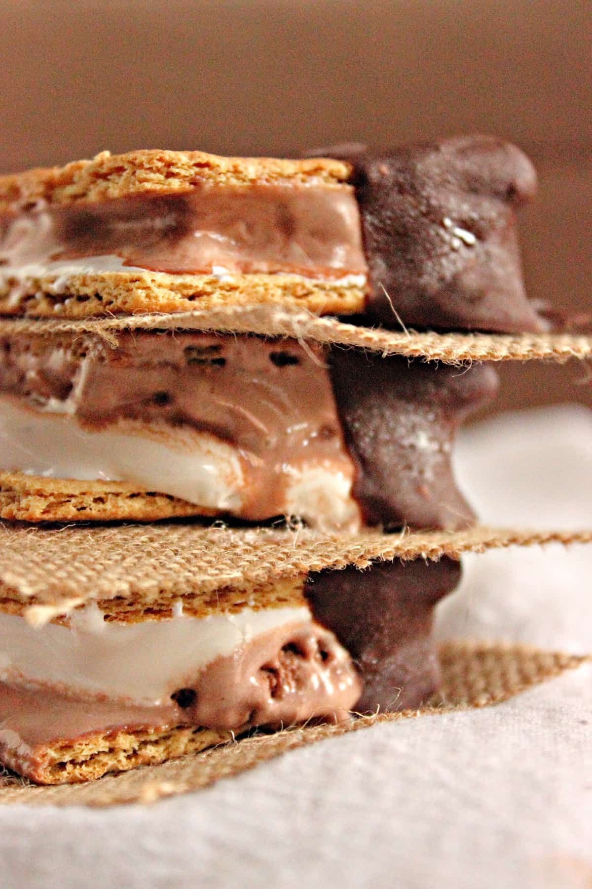 Whenever someone asks me to go over their house for a get-together I usually make a dessert. But it never dawned on me to make ice cream sandwiches. Last week when I went to my friends Sarah’s birthday party I was struggling to find the right dish to take over to her house. I began flipping through a few of the several cookbooks I have and nothing really “shook my tail feathers” (yes I just said that). I brought out my huge Bon Appetit Dessert Cookbook to get inspired. Then, that is when I found it, or maybe it found me. I found an easy, no bake, Smore’s ice cream sandwich recipe. I thought it would be perfect for the summer and I really didn’t feel like baking anything and washing a lot of dishes. They were a huge hit and gone within minutes. I totally recommend shaking things up and making ice cream sandwiches for your next get-together. I mean, it’s the summer time so it only makes sense.