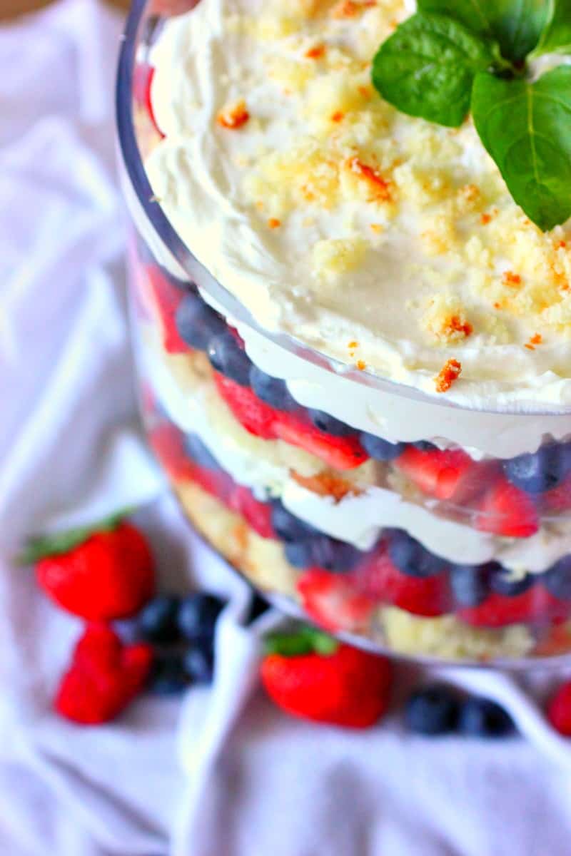 This mixed berry trifle is a beautiful dessert to make for a party. Layer it with heavy cream, mascarpone cheese, and fresh berries in a clear glass bowl. It’s also a great dessert for anyone who loves fresh berries and fruit desserts.