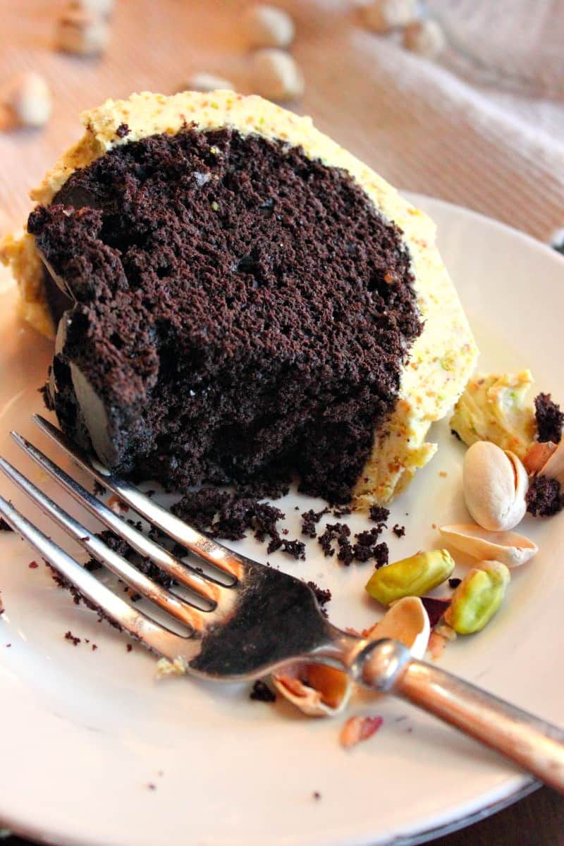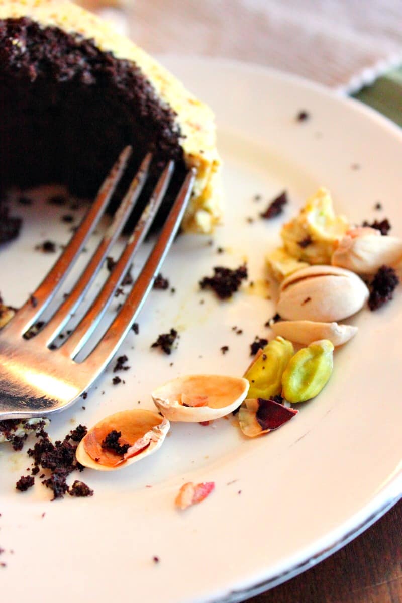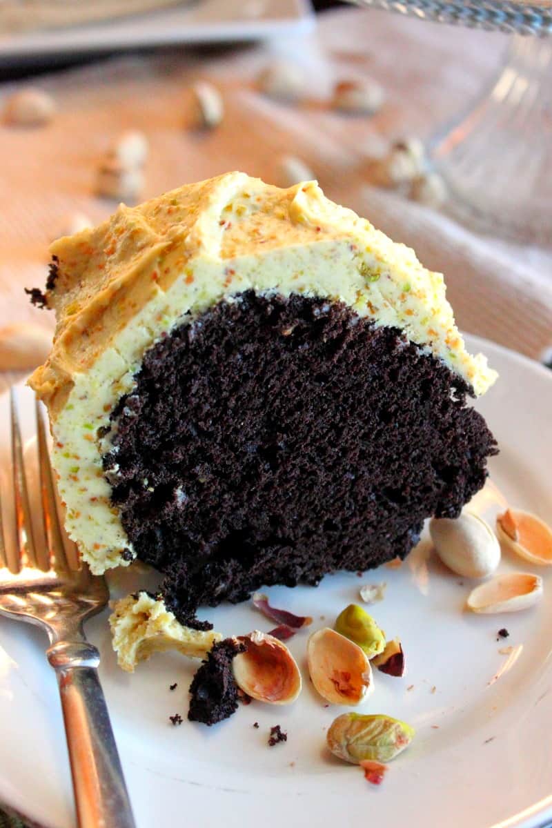 Let me assure you this Moist Chocolate Cake with Pistachio Buttercream Frosting will make your taste buds happy!
