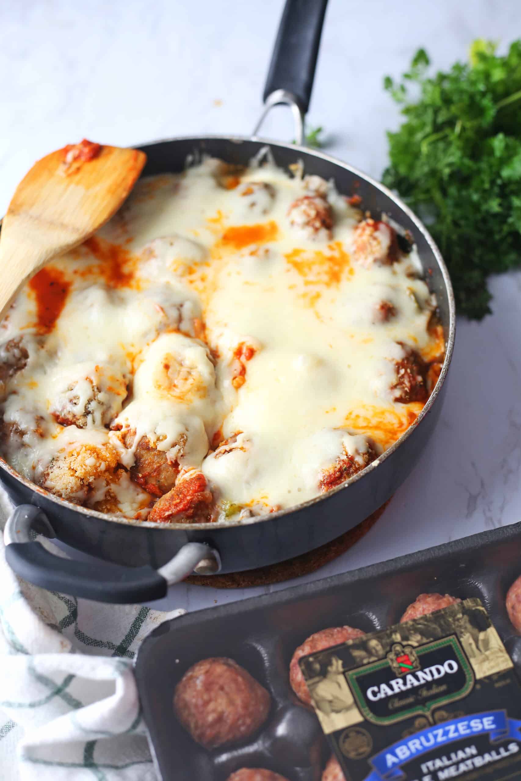In the One-Pan Meatball Pizza Skillet dish, I used the Abruzzese Italian Style Meatballs, which tastes a lot like your five-star Italian restaurant meatballs.