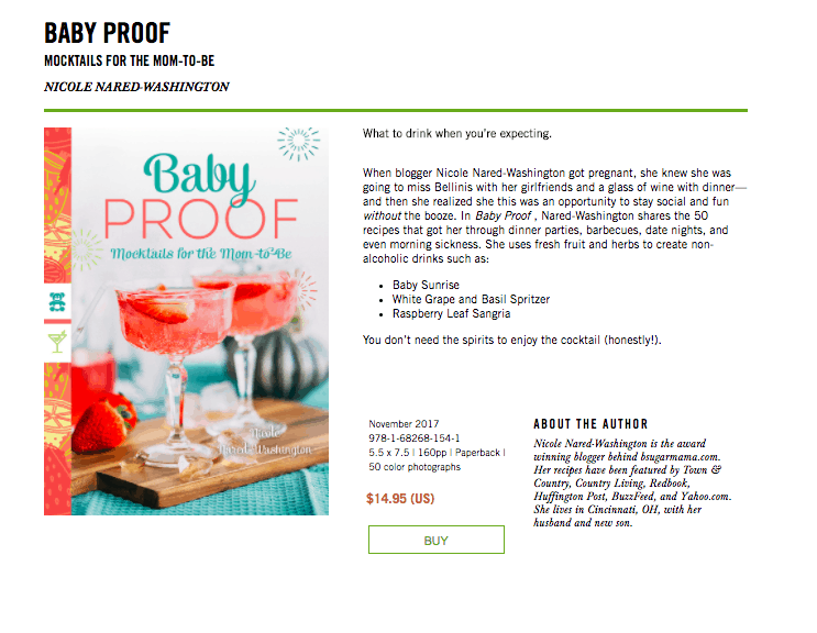 Have I told you guys that I have a book coming out this year? No? Well, let me tell you now, “I HAVE A BOOK COMING OUT!!! YIPPY!” Yes, this is an actual book that will be released through The Countryman Press who has also worked with blogger, Christina Lane of Desserts for Two. My book is called “BABY PROOF: A Collection of Mocktails for the Expectant Mother”. I am super excited about it! Why this book? Well, when I was pregnant with my sweet baby boy, I actually craved alcohol. I don’t mean a glass of wine, I wanted some vodka, a beer, or a cocktail a bit on the stronger side. I wanted a drink my entire pregnancy and although I came close to just enjoying a glass a wine here and there, I respected my husband wishes and did not consume any alcohol. At one of our doctor’s visits, I even had the doctor mention how drinking a glass of wine would not hurt the baby, but he didn’t care.