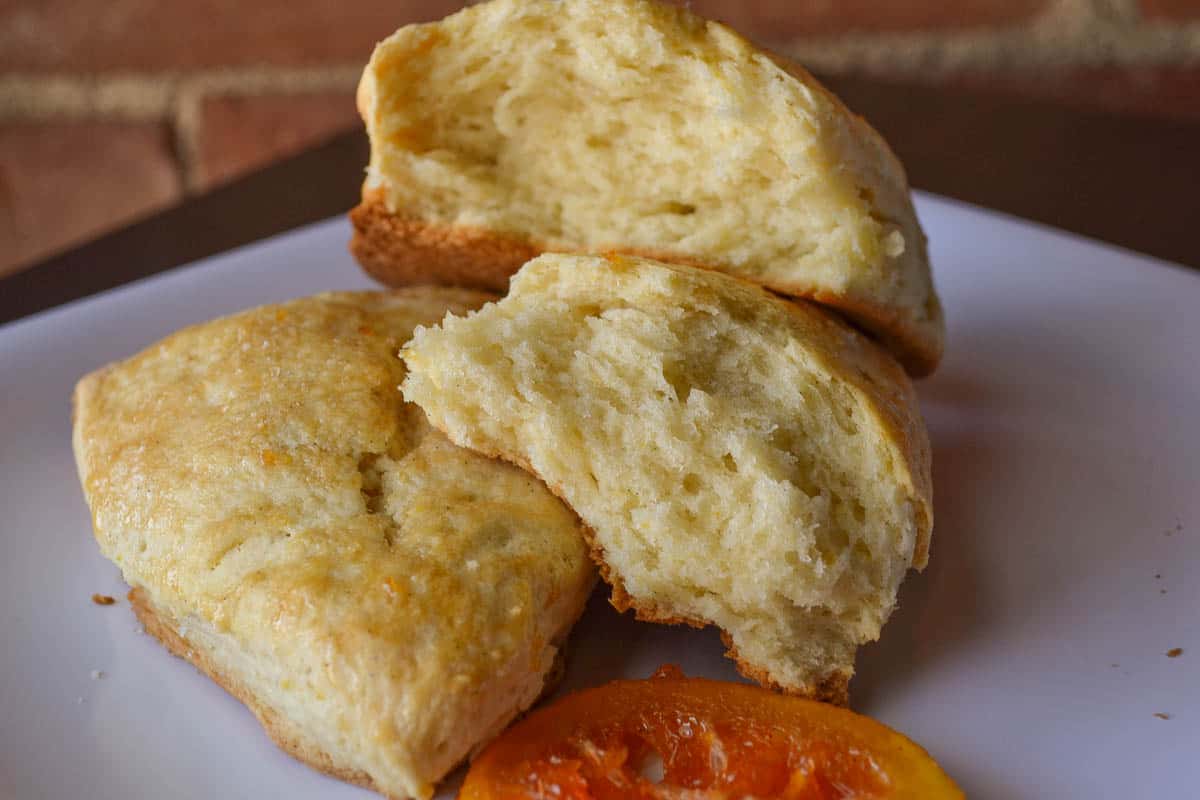 - 2. Turn the mixture to a large bowl and make a well in the center. Add the egg to the center and in a tall measuring cup or bowl, add the buttermilk, the scraping of the vanilla bean, grate the zest of half an orange, squeeze the juice from the orange, and whisk well. Interchange by pouring the buttermilk and mixing the mixture with a fork or your hands. Once all the ingredients are blended, the dough should be shaggy.