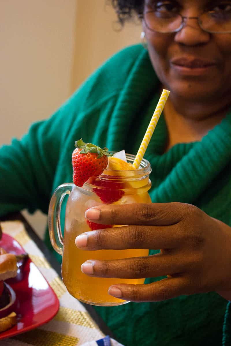 Here is an interesting fact about me, I actually am not a fan of fruit flavored teas. No kidding. I am not sure what the disconnect is for me. I think I have had too many teas where the balance between the tea and the fruit were off. Either there was too much tea and not enough fruit and the tea would taste more like tea with scented fruit. Or the tea would taste like someone accidentally dipped a tea bag inside the juice. So I never found that perfect fruit flavored tea that would give me that sense of relaxation and comfort as iced tea naturally provides. For this reason, I am actually surprised that I created a recipe that is full of balanced flavor between tea and fruit with a touch of vodka to give the beverage that nice level of coolness that we look forward to in a cold beverage. The one thing that you should look forward to in this Peach Ice Tea is the Alize Peach Vodka.