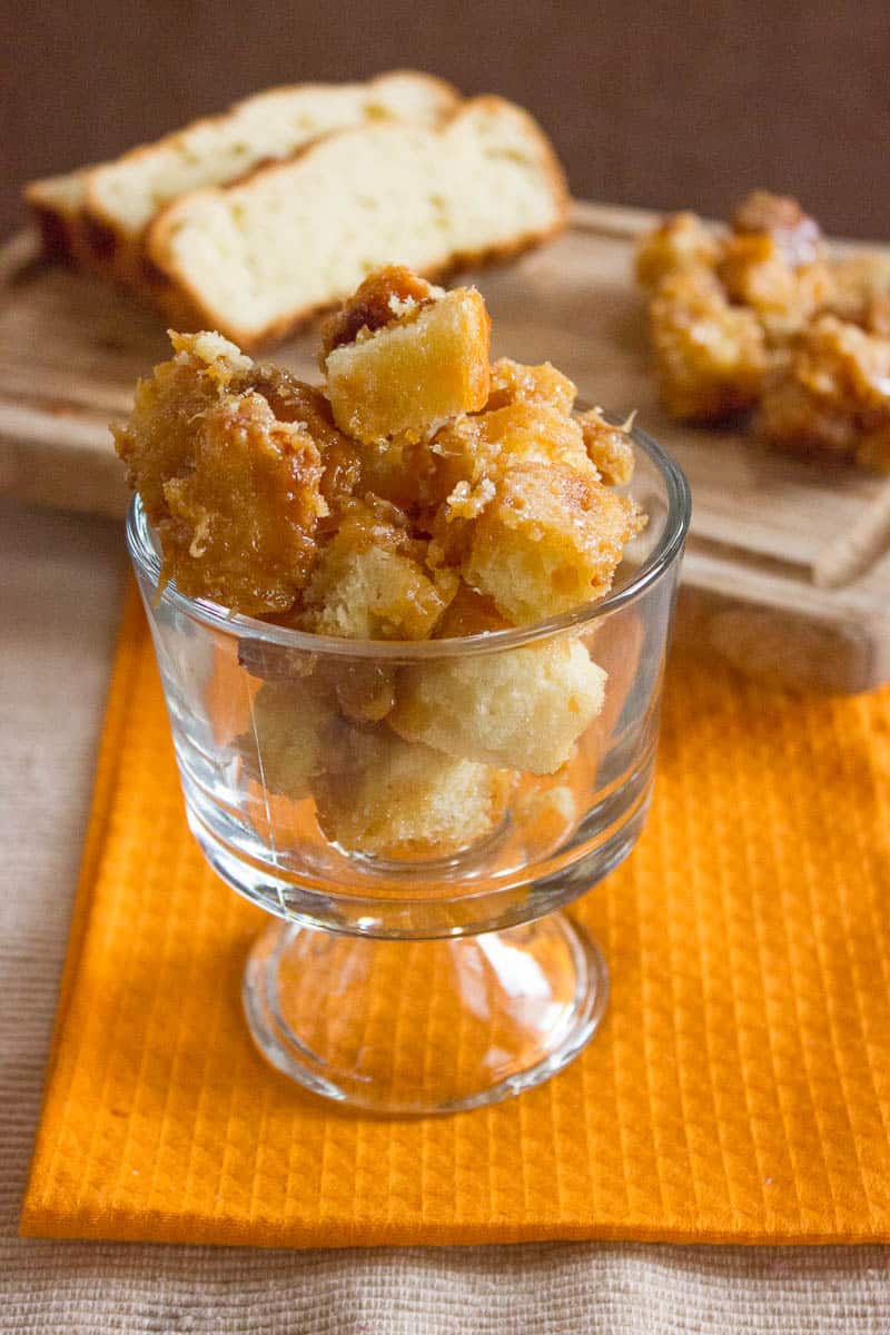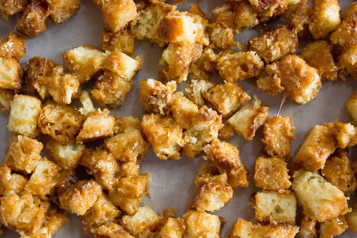 Caramel Brioche Croutons recipe adapted from Martha Stewart Magazine