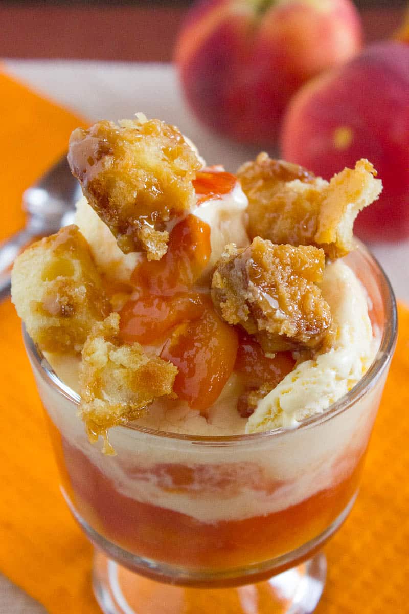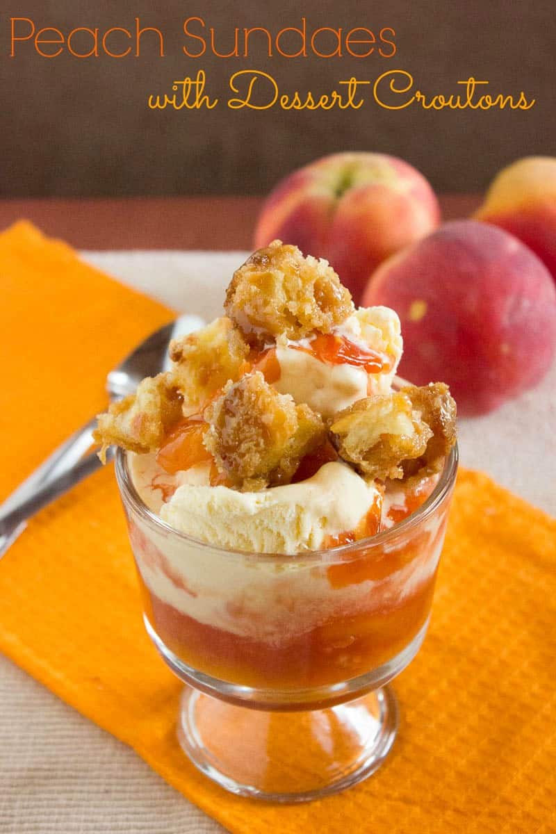 Peach Sundaes with Caramel Croutons