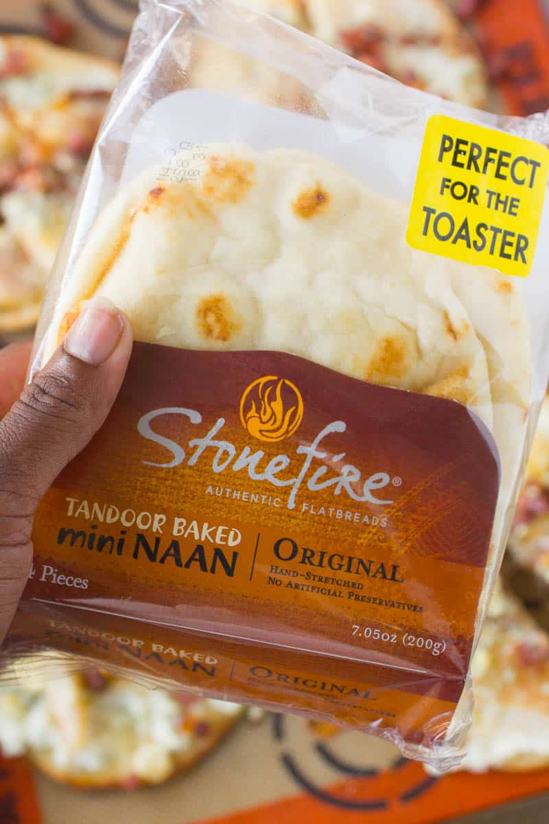 There are certain fruits like grapes and oranges that I cannot eat because my sugar raises like hands in a Baptist church on Sunday mornings. When it comes to breads and pastas I have to be very careful as well as potatoes or anything else that is carb heavy. Its driving me crazy! It’s the counting and the hunger pangs that is killing me. Although, I am not hungry as I often as I was when I started the diet, it is still a daunting eating lifestyle. I can’t wait to play my own rules and get healthy my way. One product I wasn’t aware of that will help me with carb control is Stonefire’s Authentic Mini Naan Flatbreads. They are small and delicious enough to curb the carb appetite for dishes like pizza or naan served with some of your favorite soups and stews. Not to mention, one slice of Mini Naan only consists of 24 carbs, which isn’t bad! Heck for someone who has gestational diabetes, you are allowed 45 carbs for lunch and dinner! Adding some veggies and proteins with the naan will surely satisfy anyone. This recipe that I have ready for you guys, may not meet the standards of a gestational diabetes meal plan, but it will satisfy the taste buds and appetites of your guests for the holidays.