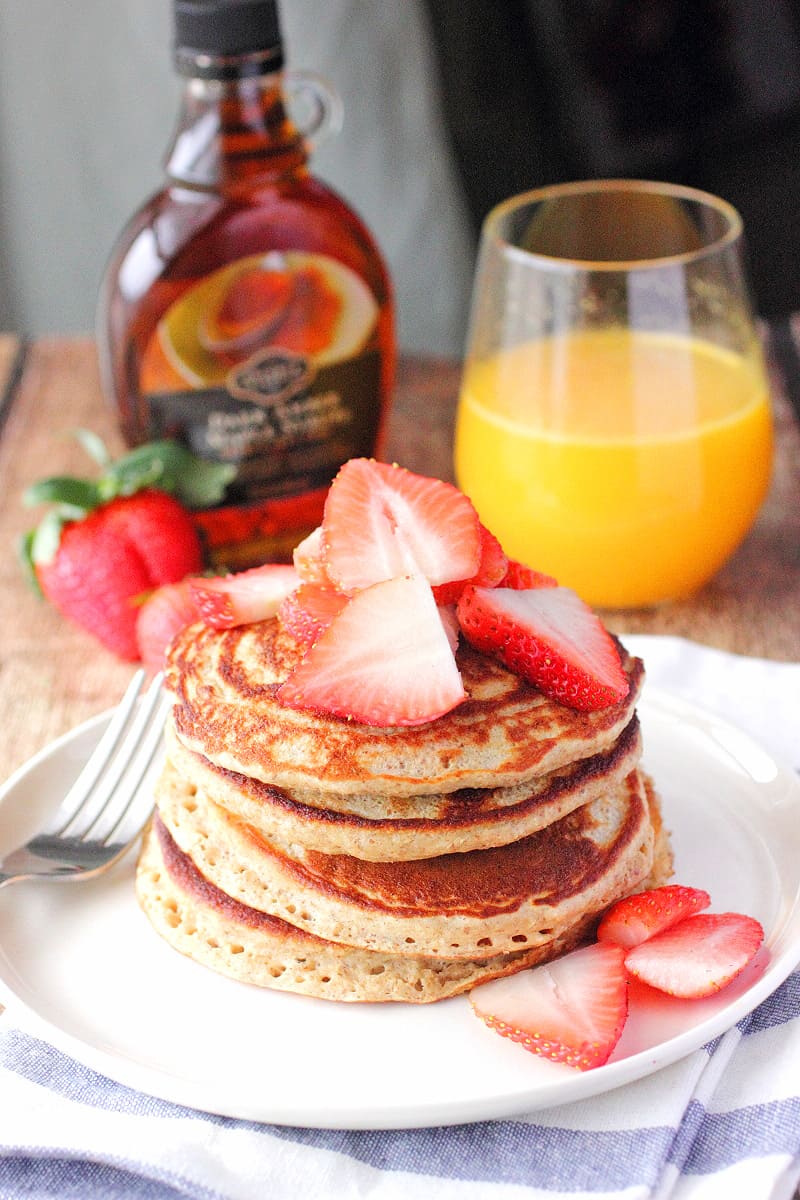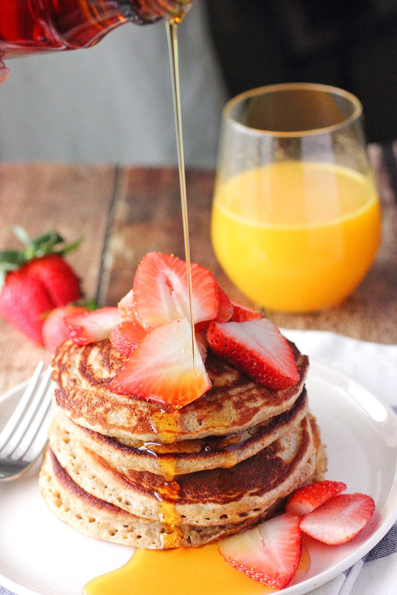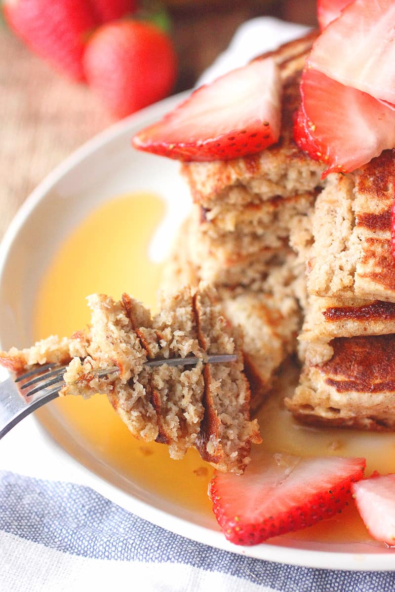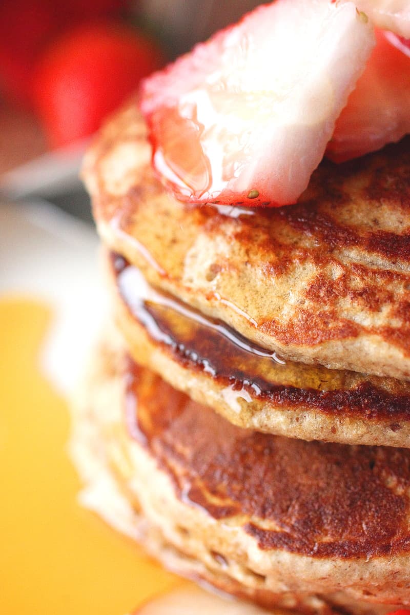 This pancakes are packed with protein and fiber and only requires one thing…a food processor. Just top off with favorite fruit and maple syrup and you have yourself an awesome breakfast.