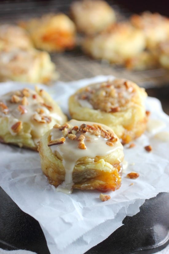 Try something different with your cinnamon rolls and use puff pastry dough instead of standard bread dough. No need to use yeast to make these easy cinnamon rolls, just use puff pastry! These Puff Pastry Cinnamon Rolls are light, buttery, and slightly crispy. They are topped with a simple maple glaze.