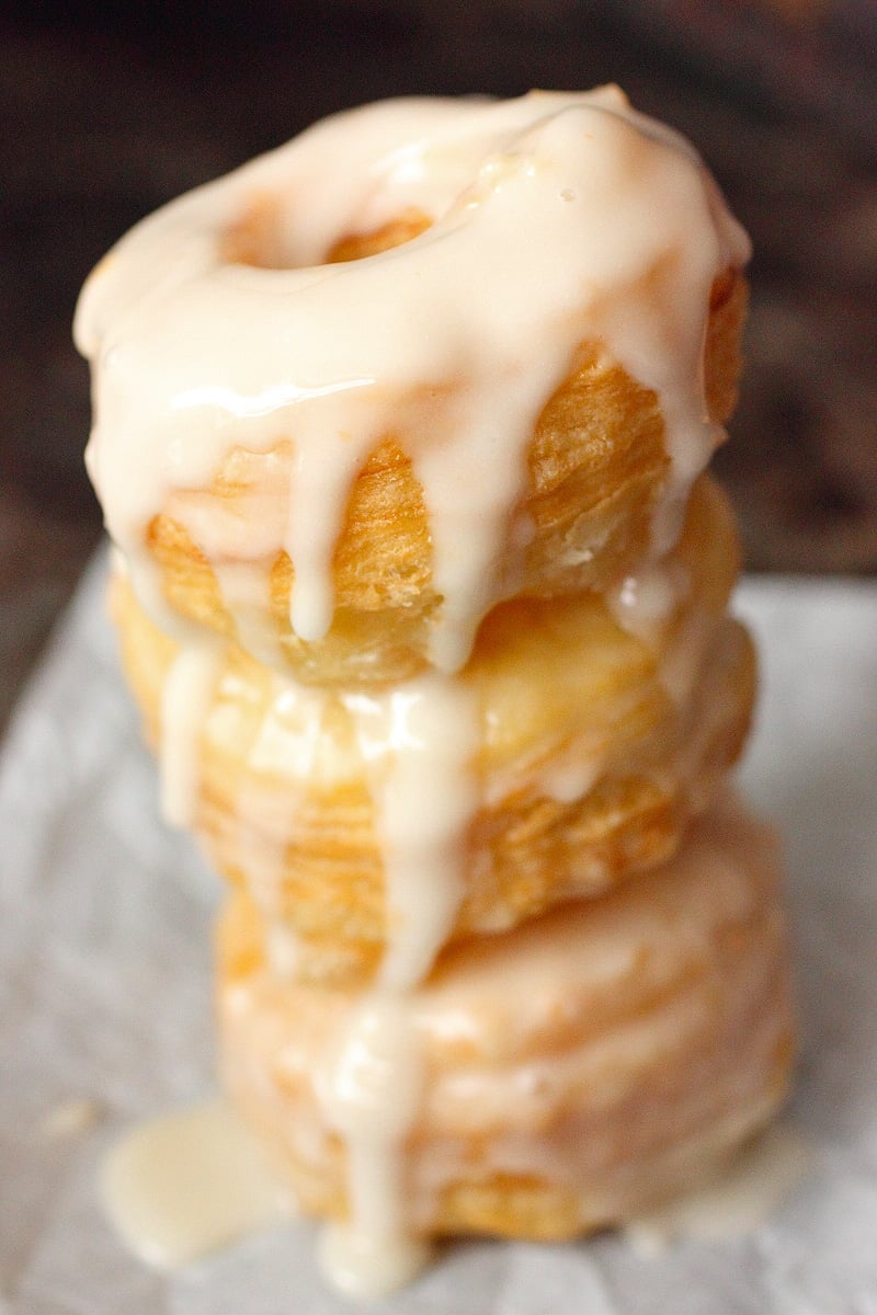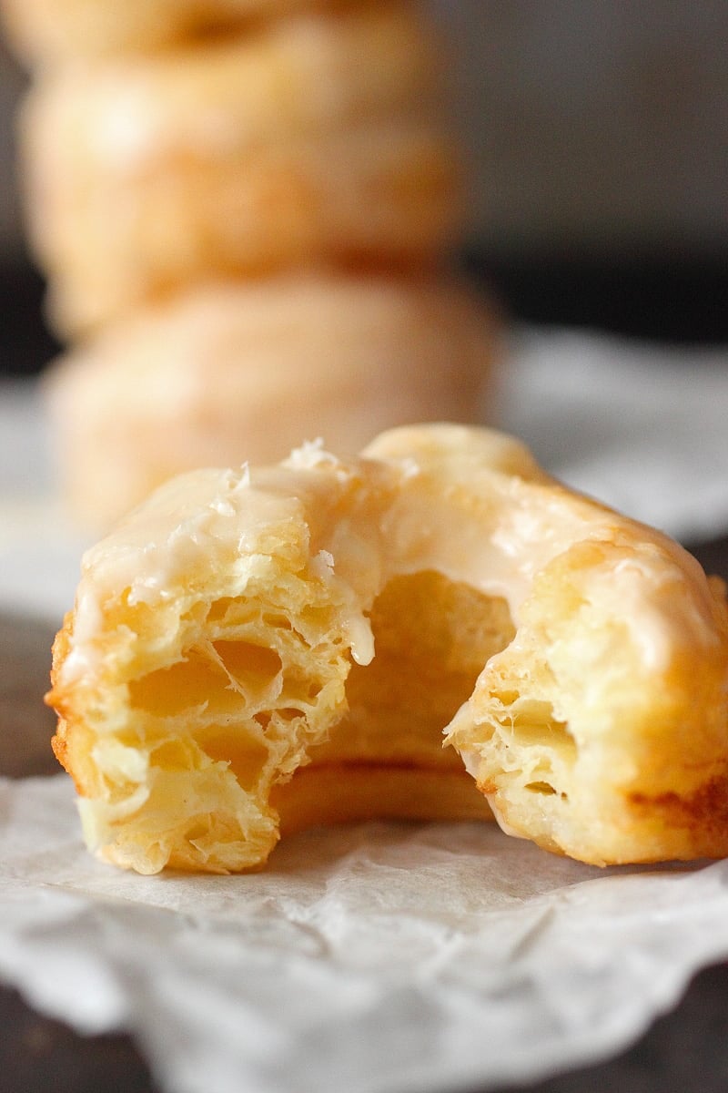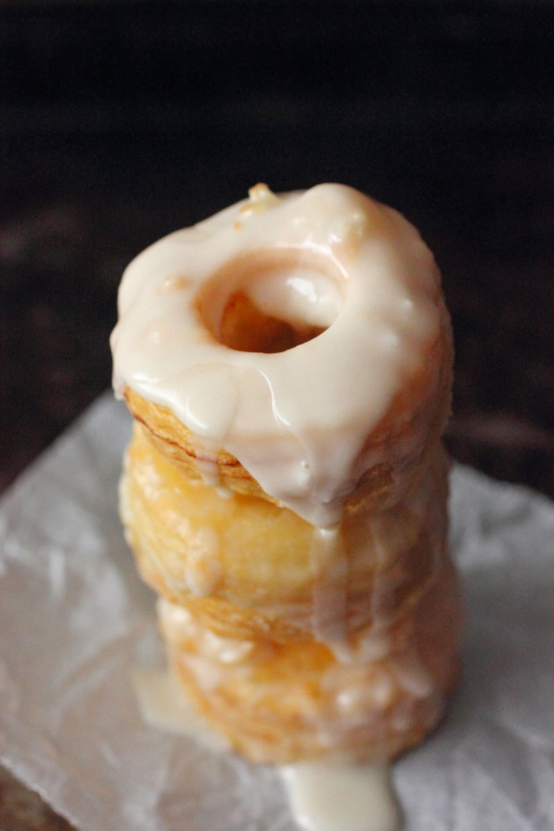I won’t lie to you. I think I had about 4 within 30 minutes. I know. I know. Shame on me. But that is how good these Cronuts are. They are super addicting. Unlike regular glazed donuts, which were so last year (not really), these Cronuts have a subtle crispy crunch when you bite into them. Not only that, they are super buttery. Just like a croissant with glaze. Hence the name Cronut. I want to urge all of you to find the nearest shop where you can get one of these babies. But until you can try a 3-day Cronut, this Cronut recipe will do.