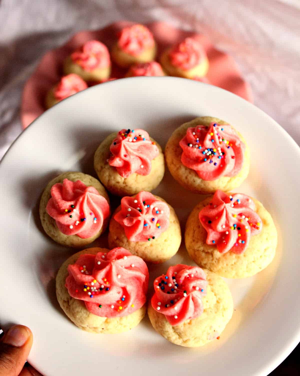 These cookies are puffy and moist. It’s almost like a different type of cookie because of how moist and soft they are. Here is the good thing about them, they are perfect for the holiday season! If you have some cookie cutters, I suggest that you go to town and make all different types shapes to decorate. When you make the buttercream, you can divide them up into different bowls and make them different colors too! Add some sprinkles, gum drops, and other fun edible goodies and you got yourself a good old-fashioned cookie decorating party!