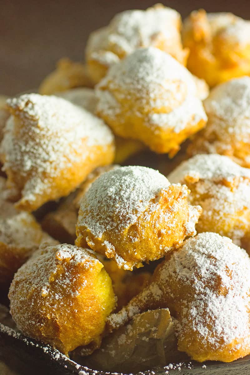 - Once all of the beignets are fried, sprinkle liberally with powdered sugar and serve.
