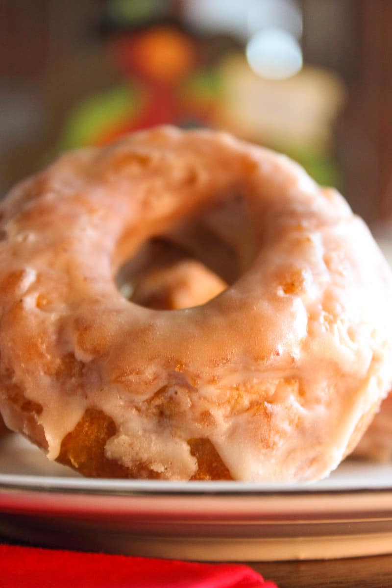 - Fry the donuts in the hot oil for 1 minute on each side or until golden brown. Turn the donuts out of the hot oil onto a cooling rack lined with paper towels. Once cool, dip donuts into glaze.