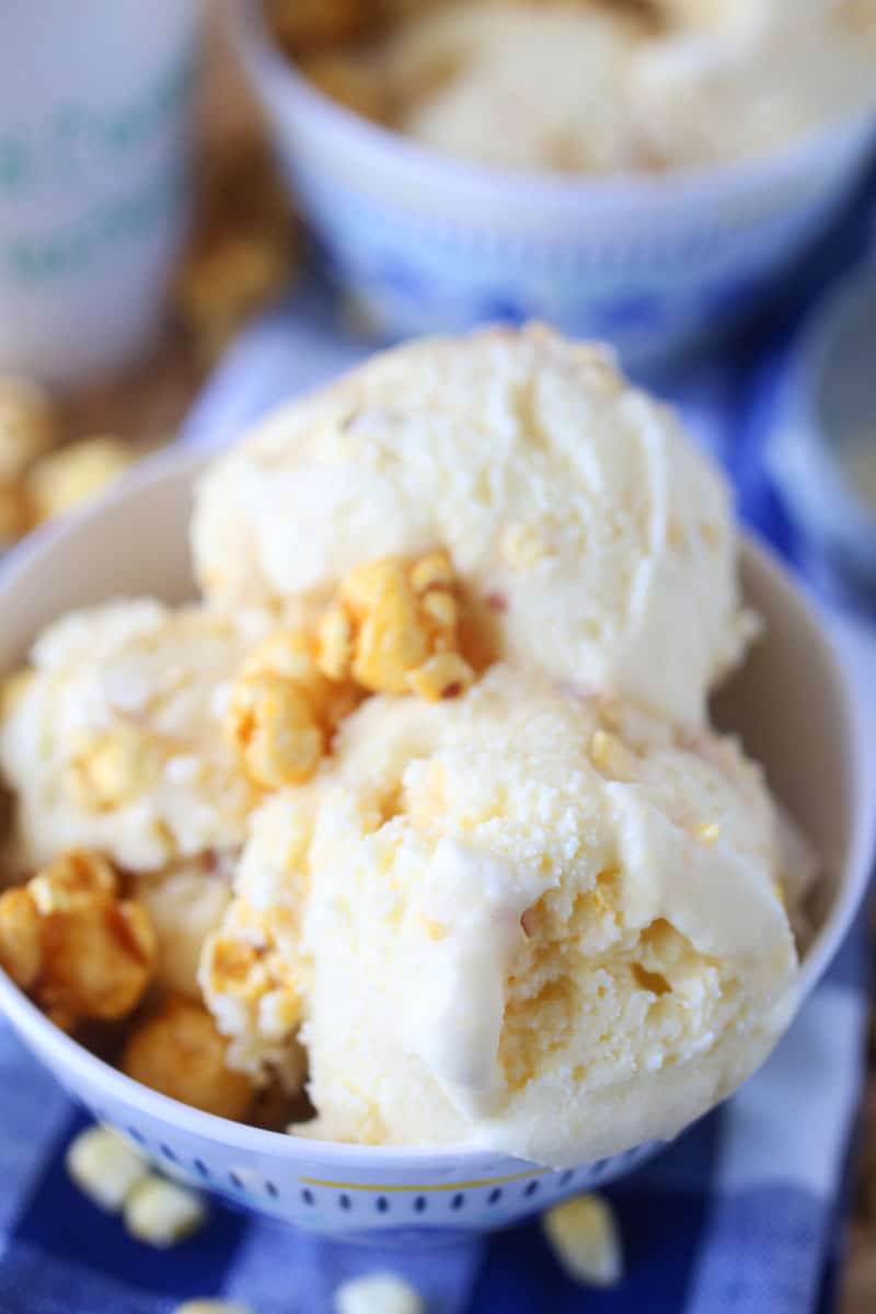 This Salted Caramel Corn Ice Cream Recipe is infused with the delicious and fresh sweet corn flavor and the added flavor of caramel corn!