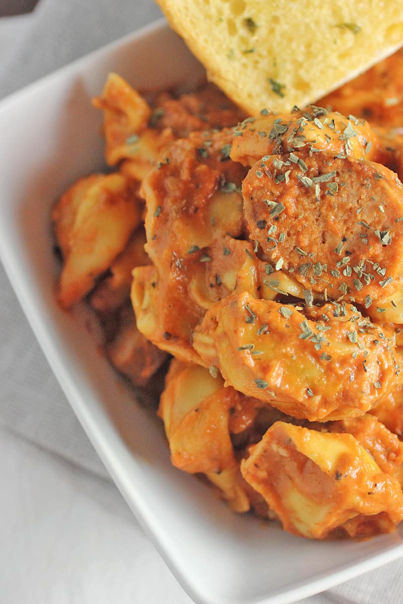 So, I have never had tortellini until now. I have to tell you, I am super mad at myself for not having it sooner. I am a pasta FIEND! I love just about everything pasta. I especially love fresh pasta. Have you ever had fresh pasta? Trust me, you are missing out on an amazing experience if you haven’t. There is a huge difference between harden pasta from a box, than pasta that has been made the same day. If you are in the Cincinnati area one of the best local places to go for fresh pasta is Pompodori. All of the pasta made the same day and I promise that you will taste the difference and love me for suggesting the place.
