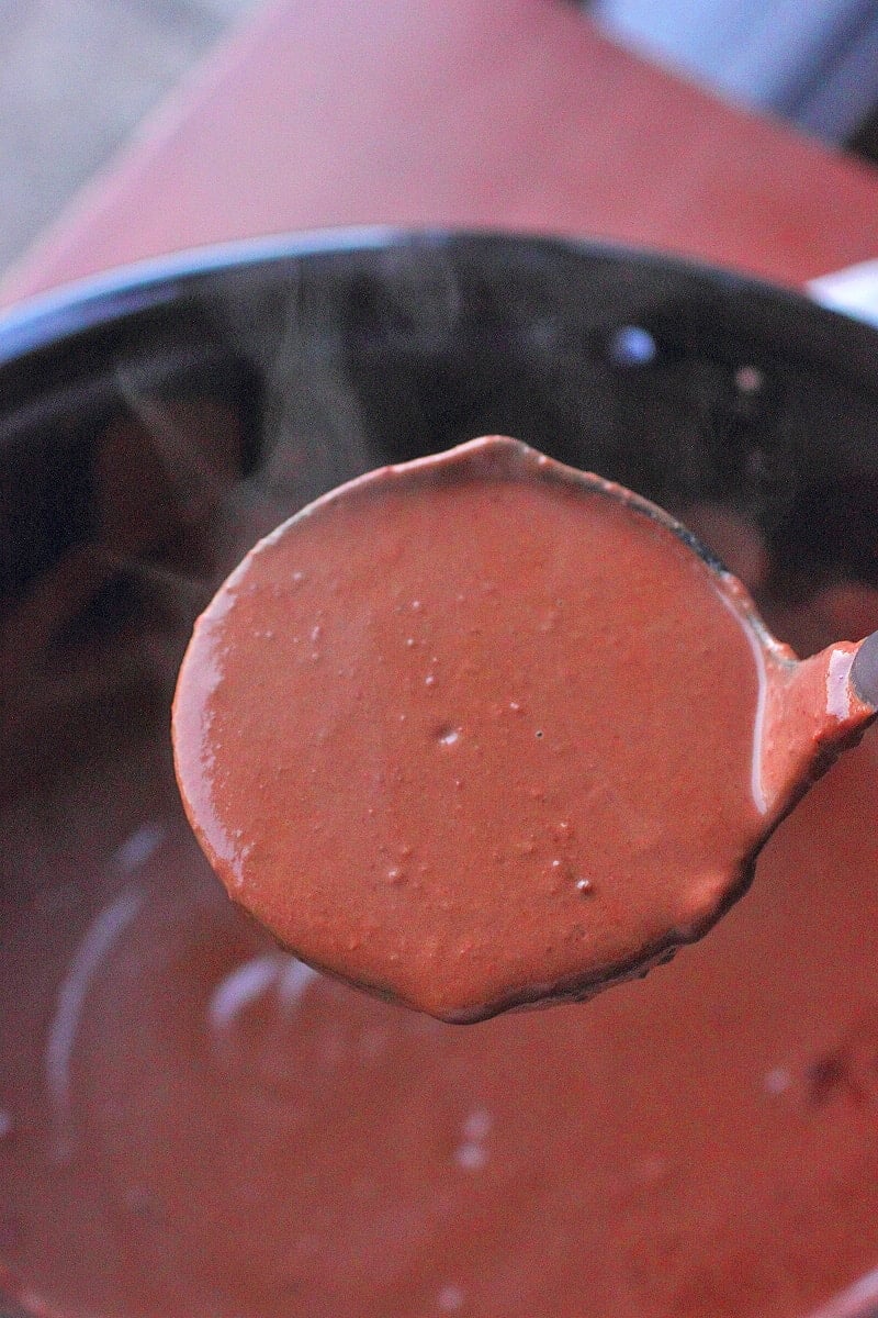 Pro Tip: If your hot chocolate gets too thick (this happens the longer it sits), just whisk in a little extra half-and-half or milk until it reaches your desired consistency.