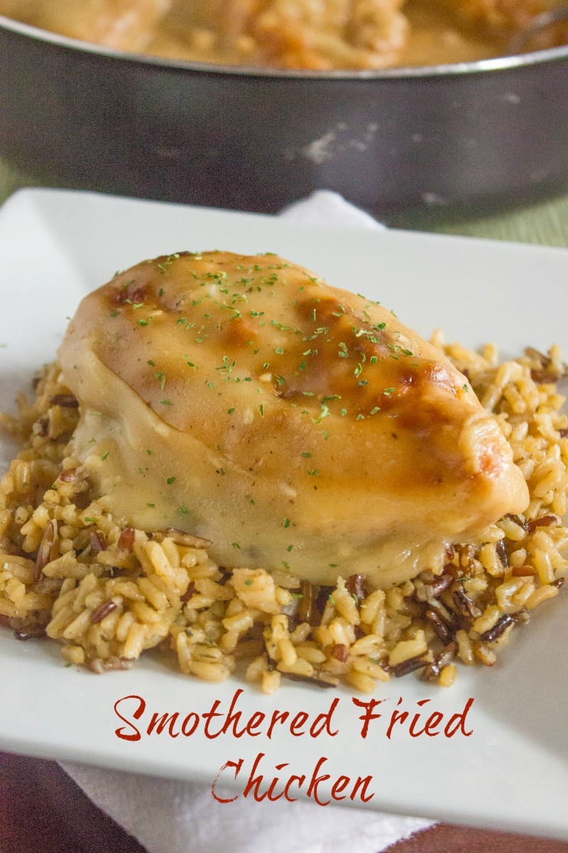 Ok! I got it. buttermilk biscuits, baked macaroni and cheese, and collard greens cook in pork fat. That is my idea of a good time. All of those side dishes gives my mouth such pleasure. Now I know what you are thinking, “Nicole, where is the meat?” Well that is where this Smothered Fried Chicken comes in. There is no way in good consciousness I can eat smothered chicken, baked macaroni and cheese, collard greens, and biscuits at the same time. I would be as big as a house. However that does sound like a wonderful idea. Nevertheless, I can eat the smothered fried chicken over brown rice? Yes?…… Okay I messed up a good thing. I get it! But this dish is absolutely wonderful guys. The gravy came out gorgeously delicious and creamy and the chicken has the perfect amount of crunch that it wont matter what it’s served with. Its good enough to eat alone.