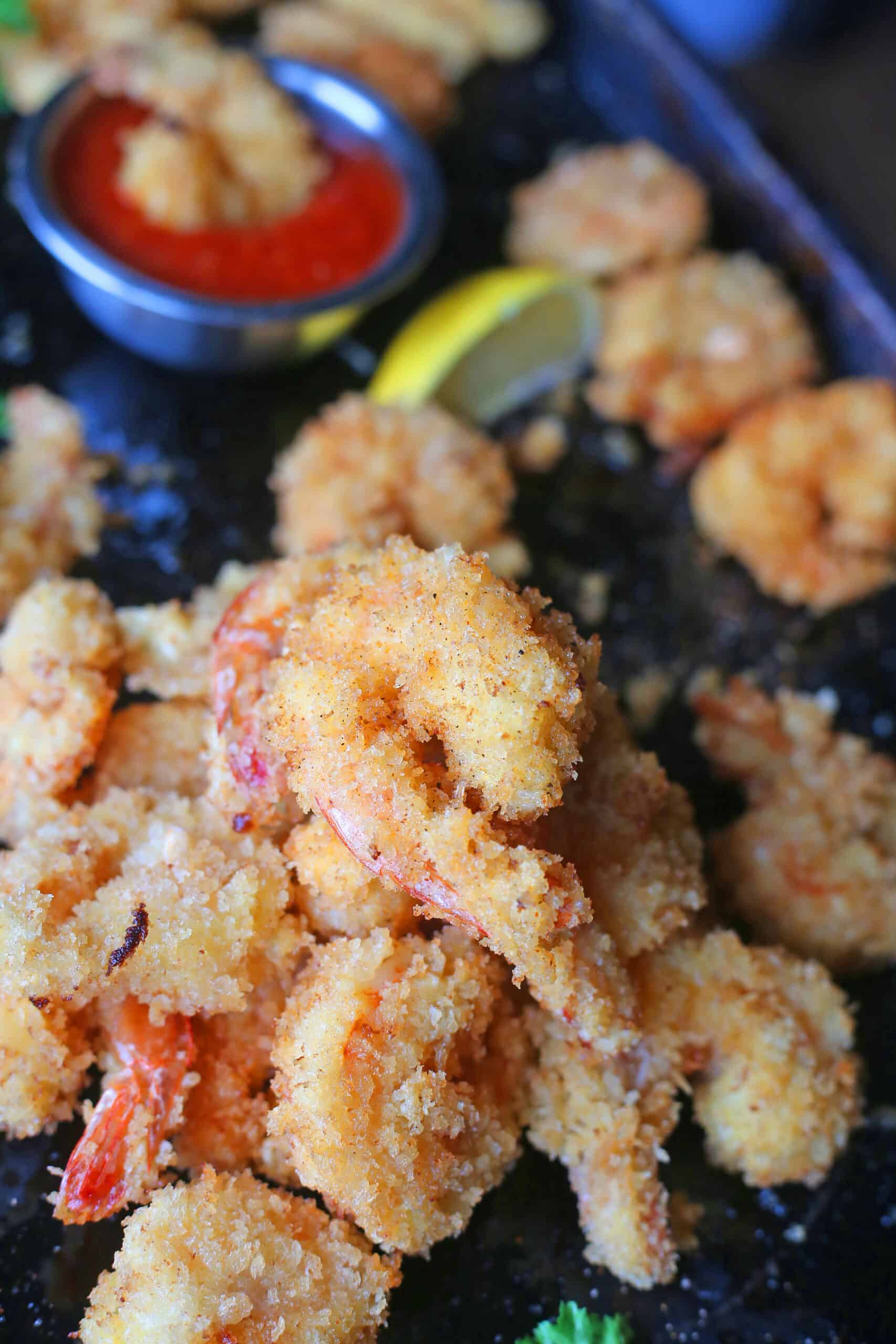 Large plump shrimp coated in panko bread crumbs and seasoned with a bit of cayenne pepper is what dreams are made of. This Spicy Crispy Fried Shrimp Recipe is great as an appetizer or the main part of an amazing dinner.