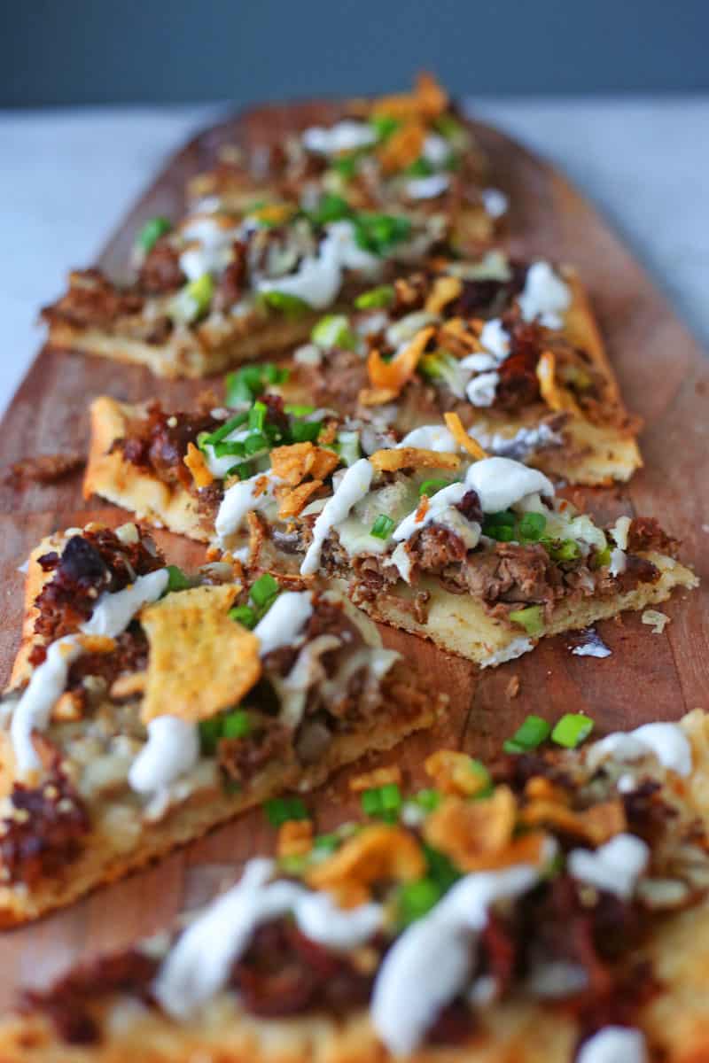 When it comes to baked goods, there really isn’t a lot of room for creativity in the recipe. You kind of have to stick to the script when it comes to making cookies, cakes, and pies. However, when it comes to entrees and appetizers like this Steak and Mushroom Flatbread Pizza, you can take away and add different elements you want to see, to make the recipe your own. Not only that, I love it when there is a recipe that can go for either an appetizer or main course.