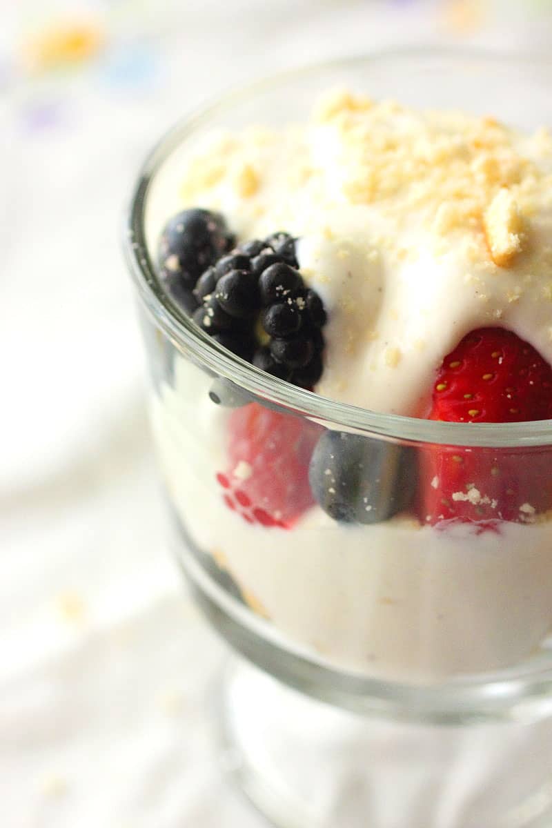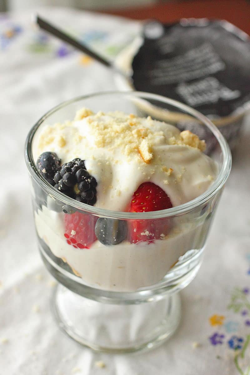 I tried them all and I loved each of them! You can also use this yogurt to make easy and delicious treats. Of course, there is a granola, fruit, and yogurt. Now, you can make Fruit & Yogurt parfait with shortbread cookies! All you need are some mason jars and mini trifle dishes, place some crushed shortbread cookie crumbs at the bottom, take one of your favorite Petite Cream yogurt flavors and spoon on top, place some fresh fruit on top of that, and the last bit of your yogurt on top of the fruit. So easy! This works as an easy snack to serve guests, kids when they get home from school, or whatever! Easy clean up and no baking time. Couldn’t ask for anything better in a recipe, right?
