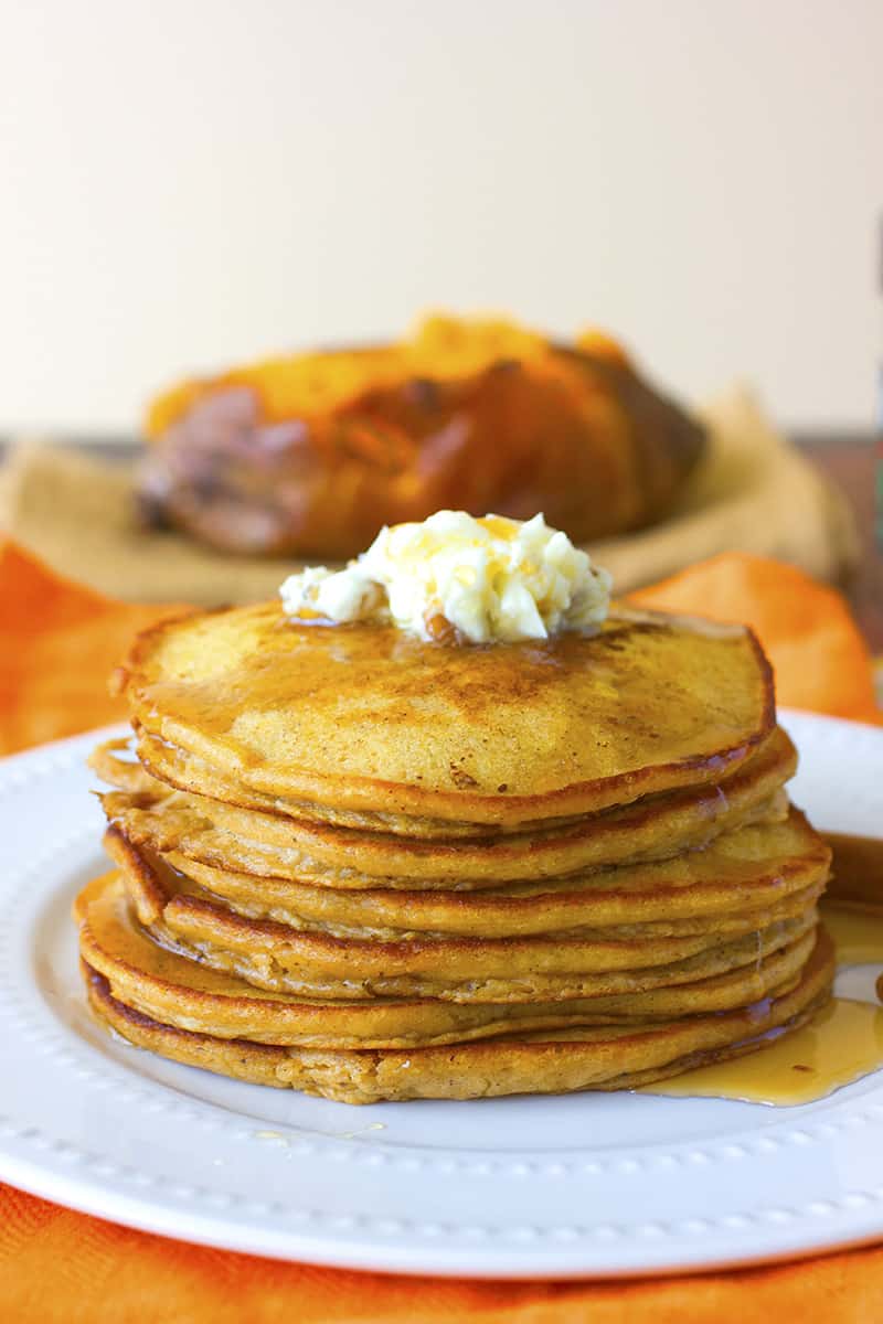 It is still the season for sweet potato dishes and this Sweet Potato Pancakes Recipe is amazing!