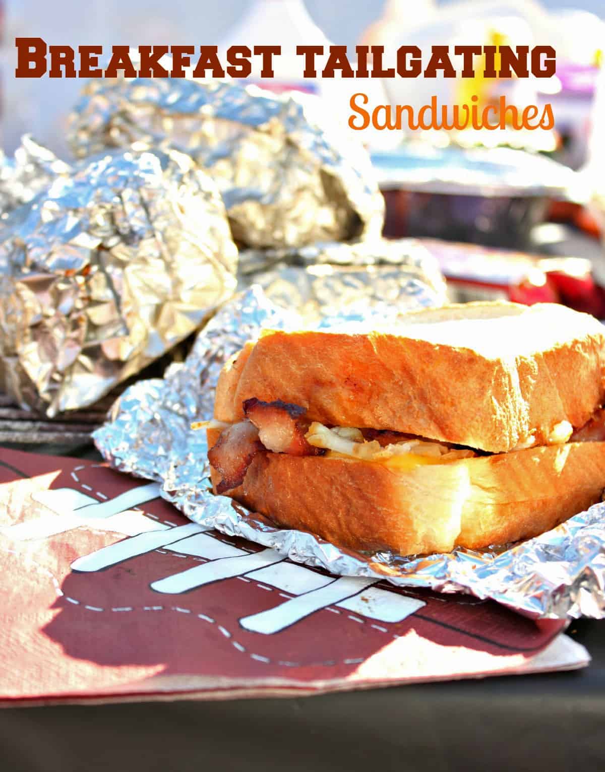 In order to get a pretty descent car spot and you have to get up pretty early in the morning to secure your spot near the Paul Brown Stadium. I’m talking no later than 9 am. So I thought it would be nice to make some manly football sandwiches before the game! When I cam up with this thought I wondered “Why not just pile on a whole bunch of breakfast ingredients and put them on a sandwich?” I can be such a genius when I want to. Even when I don’t want to I’m a genius. And I am telling you, if you make these sandwiches they will be a big hit at your next tailgating party and a huge hit on your belly.