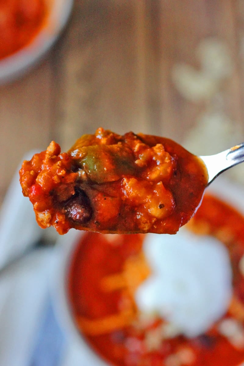 Let me first start off by saying that I am not a huge chili person. Don’t get me wrong, I like chili but I love a good bowl of hearty and flavorful chili like this Turkey Chili I made. My mother is the blame for my “iffy” attitude towards chili. Let me share with you my experience of chili growing up in my household. First of all my mom is no cook. I mean we ate, but her food was made from a box or some weird recipe she came across in magazine that none of us really liked. However, she had her meals. One of her best meals, that I remember, was chicken dumplings. I remember walking through the kitchen to see her actually cutting real carrots and celery. I remember this so vividly because I actually stared for what might have been 10 seconds, but it seems like I stared for 10 minutes. I was amazed that she knew what real vegetables looked like let alone how to use them.