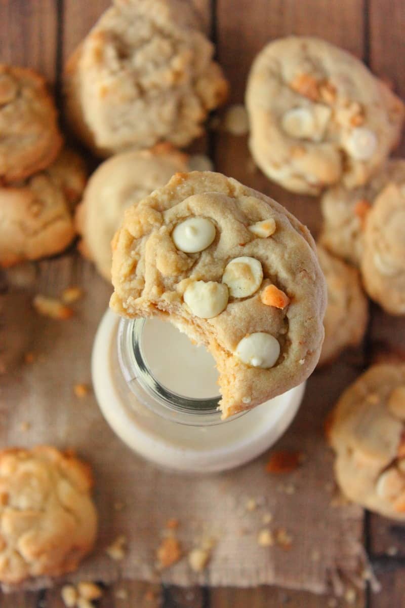 I bet you’re wondering why in the world would I make these cookies if I don’t like white chocolate? That is so funny. Because I am wondering the same thing. You see, only in white chocolate macadamia nut cookies can I tolerate and absolutely love white chocolate. I don’t know what it is about it to be honest. They are brilliant if you ask me. Of course I prefer chocolate chip cookies over white chocolate chip cookies, but they are still great, especially coming out of the oven.